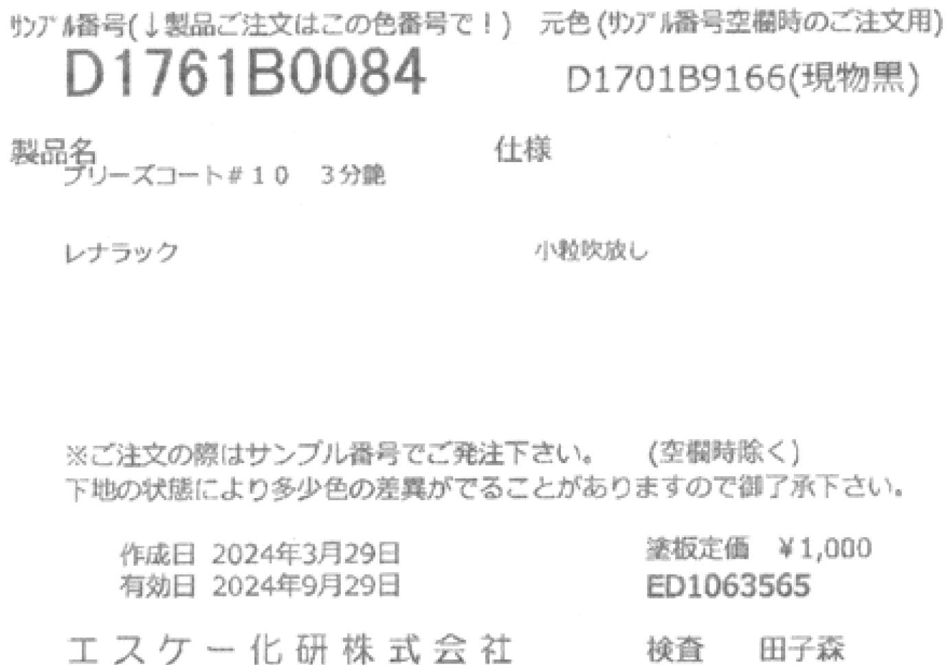 - 商品名:アミラック KDN1200 見本色 2分艶