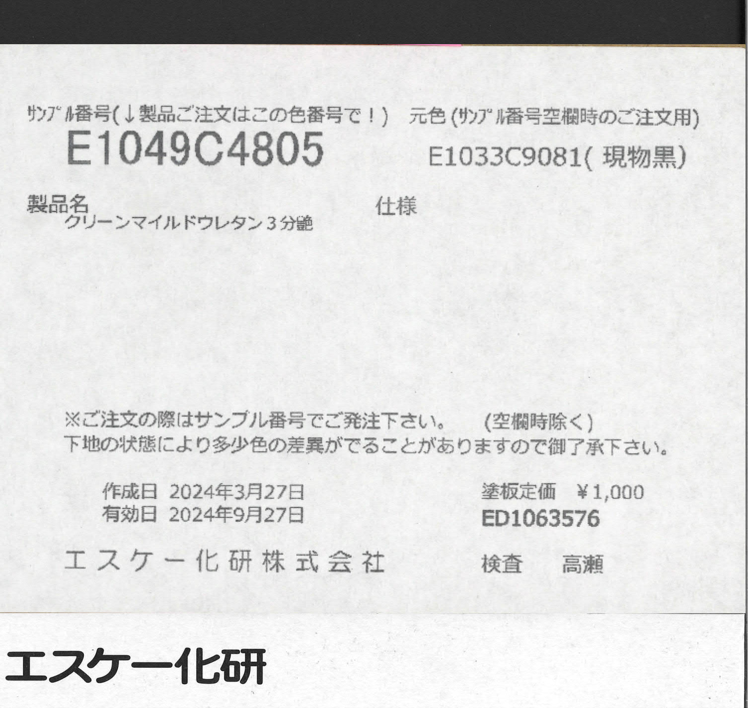 - 商品名:E1049C4805色 艶消しEP塗料